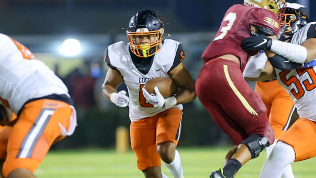 Early on it was evident how Aquinas was going to attack Homestead's defense and that was on the ground with Lyle. The Ohio State-commit displayed his bruising running style against would-be Broncos' defenders.